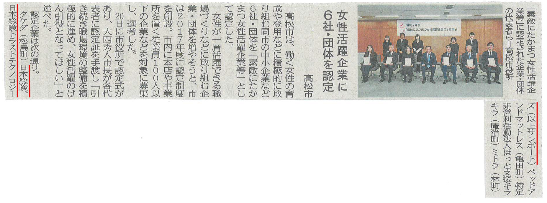 なお、本件は新聞にも掲載され、女性活躍推進に取り組む企業・団体として紹介されました。